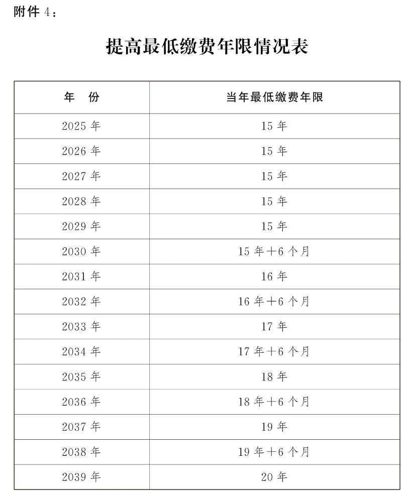 4.提高最低繳費年限情況表