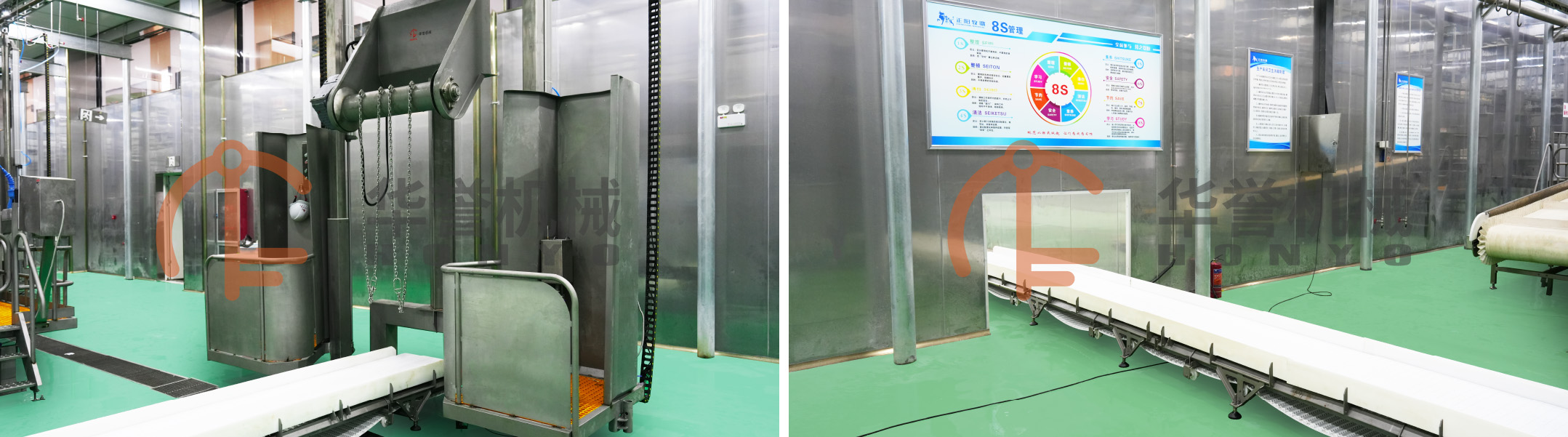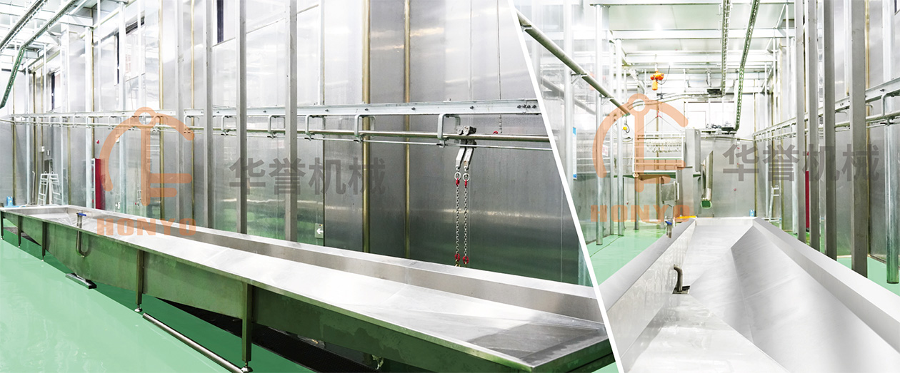 分割輸送線在動力驅(qū)動下,通過輸送帶等機構(gòu),將待處理的動物運送到屠宰和分割作業(yè)的各個環(huán)節(jié),完成自動化生產(chǎn)。