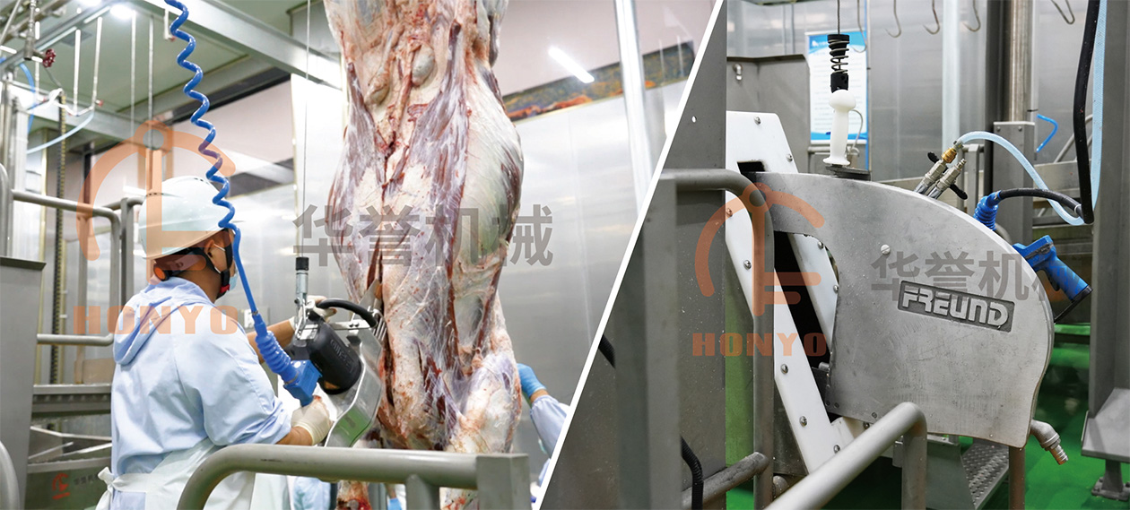 屠宰中的劈半是將牛胴體劈成兩半的過程,這是肉類加工行業(yè)的重要環(huán)節(jié),有利于運輸、存儲和銷售。