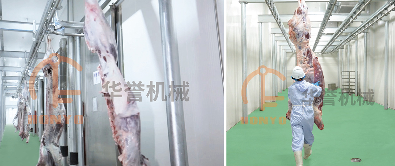 拴腿提升有助于屠宰過程的順利進(jìn)行。將牛提升至適當(dāng)?shù)母叨?,可以方便屠宰人員進(jìn)行剝皮、剔骨等操作,提高工作效率。